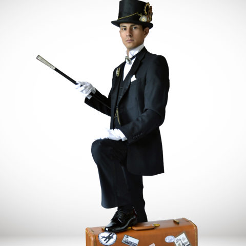 El cual tiene un estilo retro futurista, mezcla la magia clásica y elegante, con locas historias de sus viajes por el tiempo con su maletín lleno de artilugios y maravillas del futuro y del pasado.