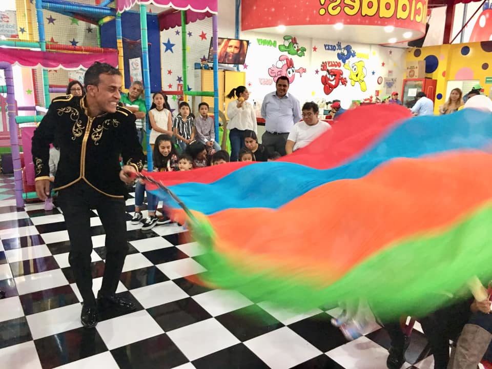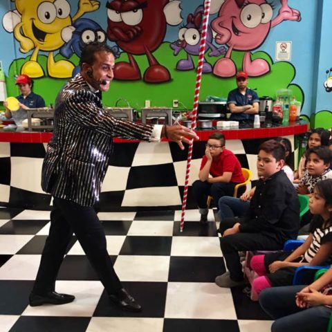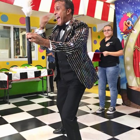 Durante 45 a 50 minutos se desarrolla magia de escenario, cómica e interactiva realizando apariciones de palomas efectos de fuego, pañuelos, flores, sombreros entre otros pero sin olvidar el principal objetivo es siempre divertirles y arrancarles risas a todo el publico y primordialmente al festejado por lo que ademas agregamos el elemento adicional de la ventriloquia.